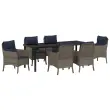 vidaXL Komplet za jedilnico v vrtu z blazino 7 pcs Siva Poly ratan