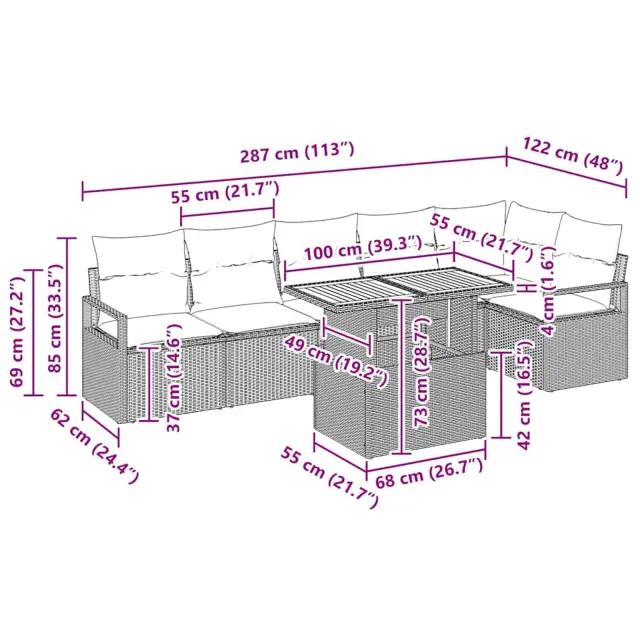 Ta eleganten komplet za zunanjo jedilnico iz poliratana ponuja stilsko in moderno možnost za zunanjo sprostitev in jedilnico. Njegova sleek, minimalistična zasnova z geometrijskimi linijami dodaja pridih elegance, kar ga naredi popolnega za vrtnarske in terasne nastavitve. Popoln za pomlad in poletje, zadostuje različnim okoljem, kjer je potrebno združiti funkcionalnost in estetiko.
