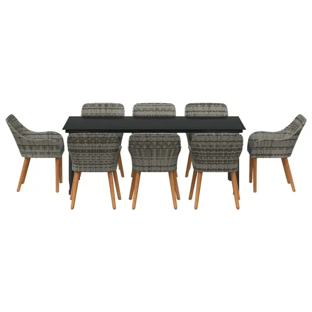 vidaXL Komplet za jedilnico v vrtu z blazino 9 pcs Siva poli ratan