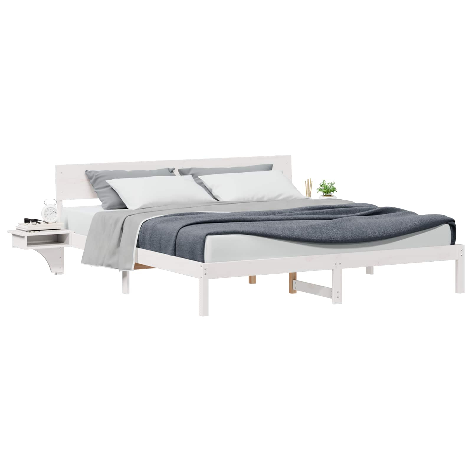 vidaXL Konstrukcija postelje Bela 200 x 200 cm Masivno borovo les