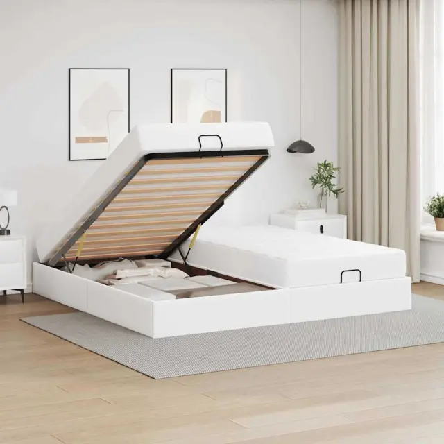 vidaXL Konstrukcija postelje Čista bela 200 x 200 cm Umetna koža