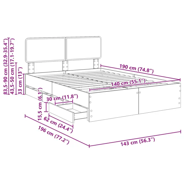 • Trajnost inženirskega lesa Postelja je narejena iz kakovostnega inženirskega lesa, ki se dobro upira obrabi. To pomeni, da bo postelja dolgo ohranila svoj eleganten videz in moč, poleg tega pa nudi zanesljivo oporo za vašo vzmetnico in miren spanec.
