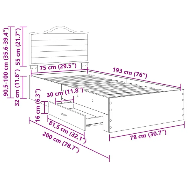 vidaXL Konstrukcija postelje Dimljeni oreh 75 x 190 cm Konstruiran les