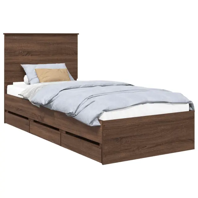 vidaXL Konstrukcija postelje Rjav hrast 90 x 200 cm Inženirsko leseno