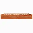 Ta pravokotni okvir postelje za shranjevanje je vražja dopolnitev vsake sodobne spalnice, kjer se preprosto povezuje funkcionalnost in minimalistični šarm. Izdelan iz trdnega bora, ponuja močno zasnovo z vgrajenimi predali za odeje in oblačila, kar optimizira prostor in zmanjšuje nered. Čiste linije in naravna lesena površina bodo odlično dopolnile vašo notranjost ter dodale harmonijo.