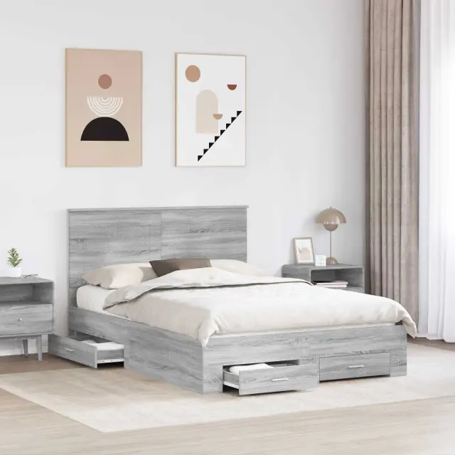 vidaXL Konstrukcija postelje Siva Sonoma 140 x 190 cm Konstruiran les