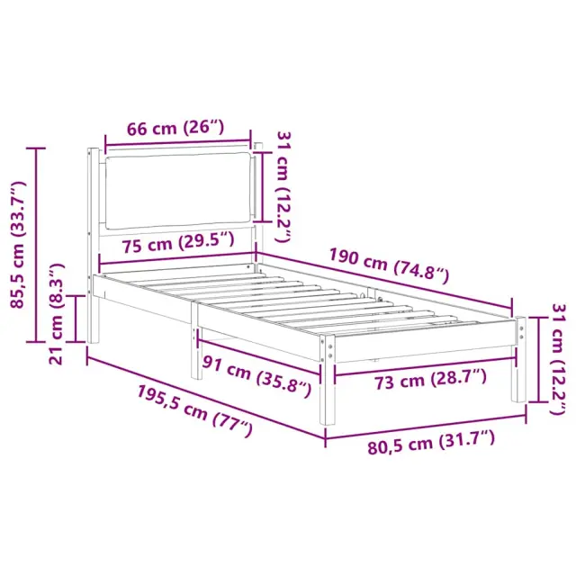 • Splošne dimenzije: 195,5 x 80,5 x 85,5 cm (D x Š x V)