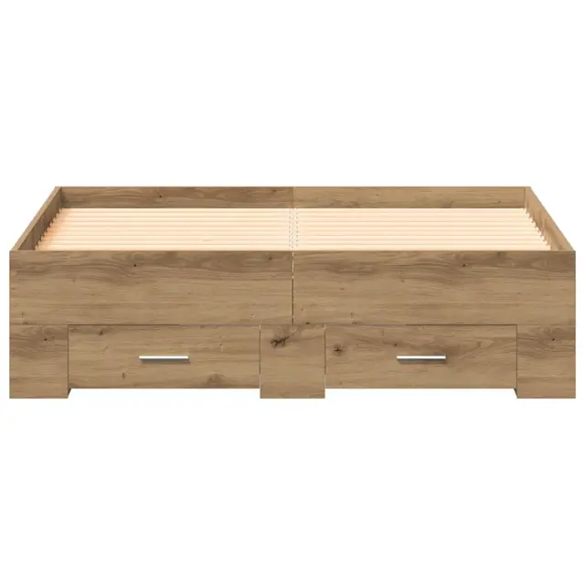 Ta posteljni okvir s predali združuje moderno zasnovo in funkcionalnost in je ključen element vsake spalnice. Njegov čist, linearni slog prinaša preprostost in toplino v prostor, kar ustvarja prijeten občutek. Idealno za tiste, ki hočejo kombinirati stil in praktičnost, ponuja ta okvir postelje odličen prostor za shranjevanje, ki razbremeni vašo sobo in izboljša izgled vašega spalnega kotička. S smooth površino inženirskega lesa je trpežen, a še vedno izgledno privlačen. Hkrati pa se odlično ujema z različnimi spalnimi dekorji.