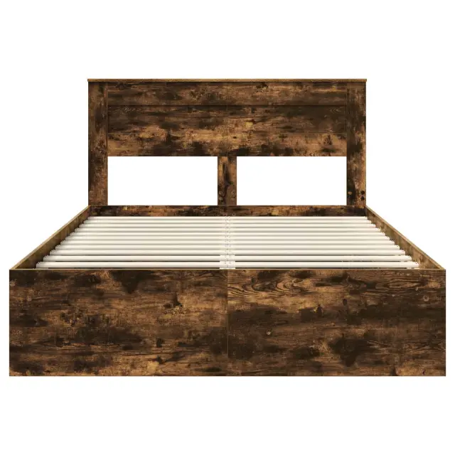vidaXL Konstrukcija postelje z vzglavjem Dimljeni oreh 140 x 190 cm