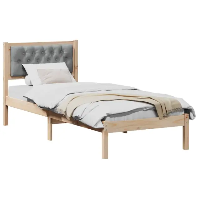 vidaXL Konstrukcija postelje z vzglavjem Svetlo siva 90 x 190 cm blago
