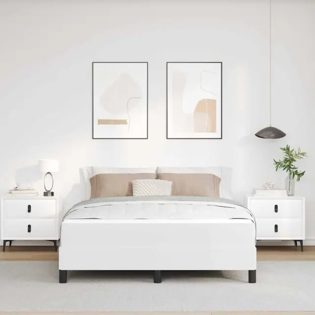 vidaXL Konstrukcija postelje z vzmetnico Bela 160 x 200 cm blago