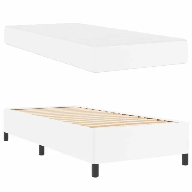 vidaXL Konstrukcija postelje z vzmetnico Bela 80 x 200 cm blago