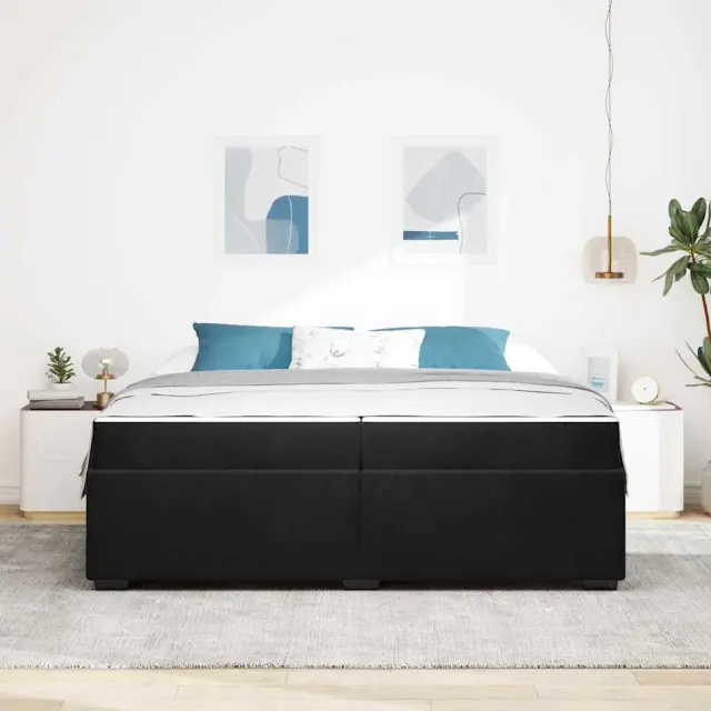 Ta žametna postelja z vzmetnico ponuja moderno eleganco in udobje, super za vse, ki cenijo dober stil in funkcionalnost v svojem bivalnem prostoru. S svojo pravokotno obliko in udarno črnobelo barvno shemo prinaša estetsko privlačnost, ki se odlično prilega vsaki spalnici. Njen sodoben dizajn, zaznamovan s čistočo in enostavnimi linijami, ustvarja prijetno vzdušje, kar je idealno za mirne noči ali ležerne vikende.