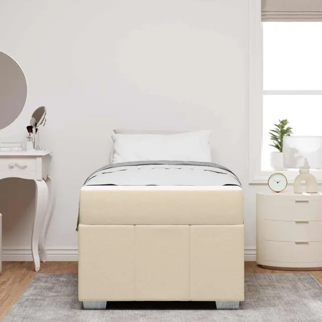 vidaXL Konstrukcija postelje z vzmetnico krema 100 x 200 cm blago
