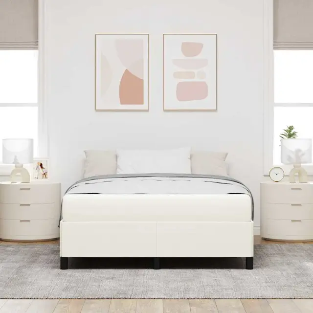 vidaXL Konstrukcija postelje z vzmetnico krema 140 x 200 cm blago