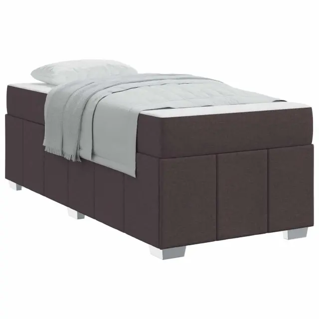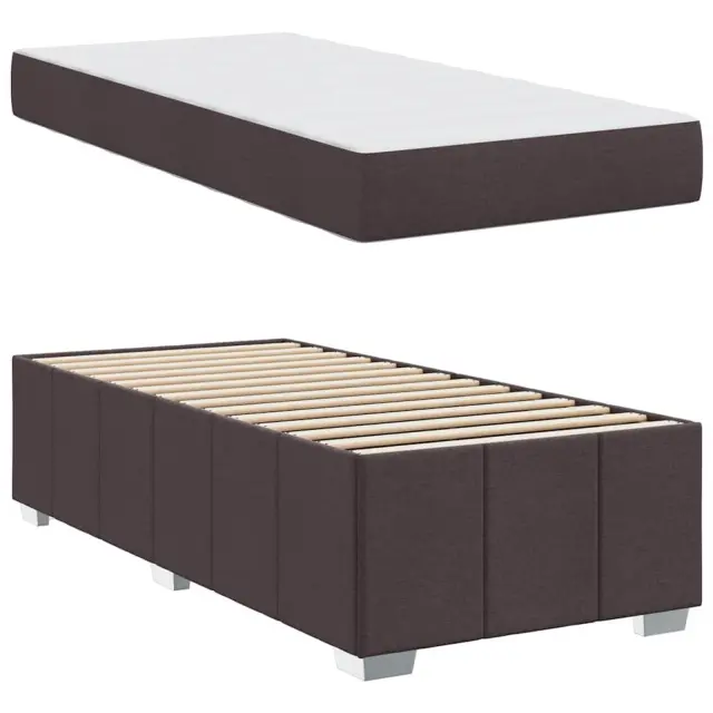 vidaXL Konstrukcija postelje z vzmetnico Temno rjava 90 x 200 cm blago