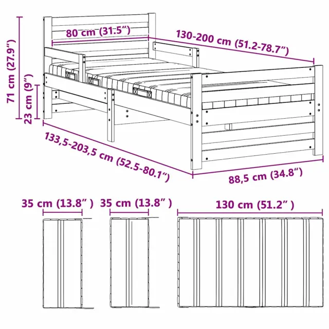 vidaXL Konstrukcija postelje z vzmetnico z vzglavjem Bela 80 x 200 cm