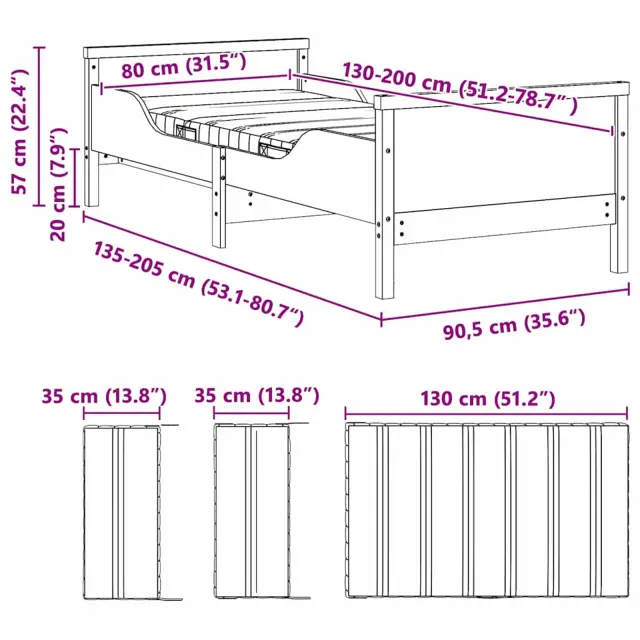 vidaXL Konstrukcija postelje z vzmetnico z vzglavjem Bela 80 x 200 cm