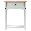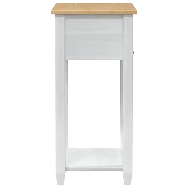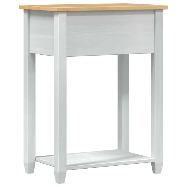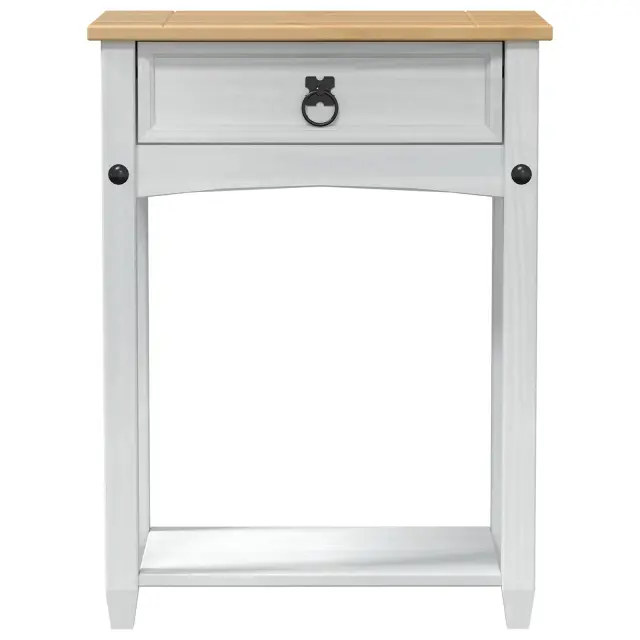 Ta pravokotna konzolna miza prinaša rustikalno eleganco v vsak prostor, naj gre za dnevno sobo ali hodnik. Izdelana je iz trdnega borovega lesa, kar ji daje zanesljivost in slog – super za sodobne in klasične prostore. Zasnova izpostavi naravno lepoto lesa s svojimi letnicami in značilnimi vozli, kar dodatno krepi njen čar.