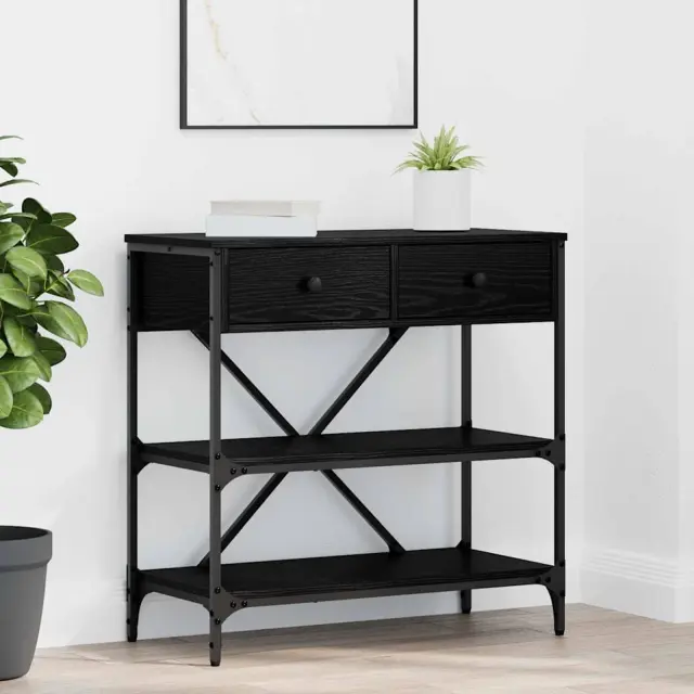 vidaXL Konzolna miza s predalom s polico Drugo Črni hrast