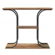 Ta industrijska konzolna miza doda sodobno noto vsakemu hodniku s svojim modernim pravokotnim dizajnom. Zasnovana je tako, da služi tako funkcionalnosti kot slogu, idealna je za tiste, ki želijo izboljšati svoje prostore z minimalistično noto. Z dimenzijami 101 x 35 x 80,5 cm se popolnoma prilega ozkim prostorom, pri čemer ponuja dovolj prostora, ne da bi bila prevelika. Njene temne barve in okvir iz inženirskega lesa nudijo gladko in elegantno površino, ki doda značaj kot razstavni in shranjevalni kos v vašem domu.