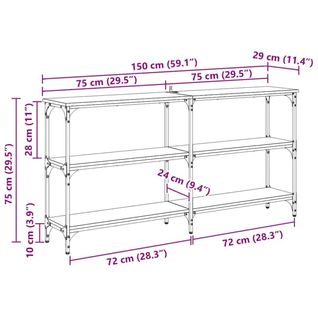vidaXL Konzolna miza Umetni hrast 150 x 29 x 75 cm