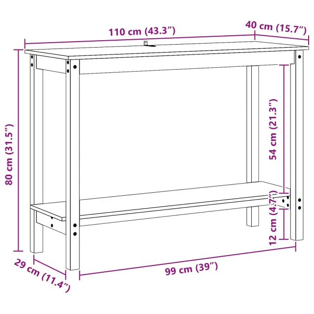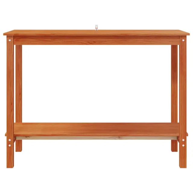 Ta konzolna miza se brez težav zlije z modernimi interierji, saj ponuja stil in funkcionalnost. Njena pravokotna oblika in masivna konstrukcija iz borovega lesa zagotavljata stabilnost in trpežnost ter olajšata dekoracijo v vsakem bivalnem prostoru. Uporabite jo kot dekorativni element ali funkcionalno mesto za shranjevanje doma.