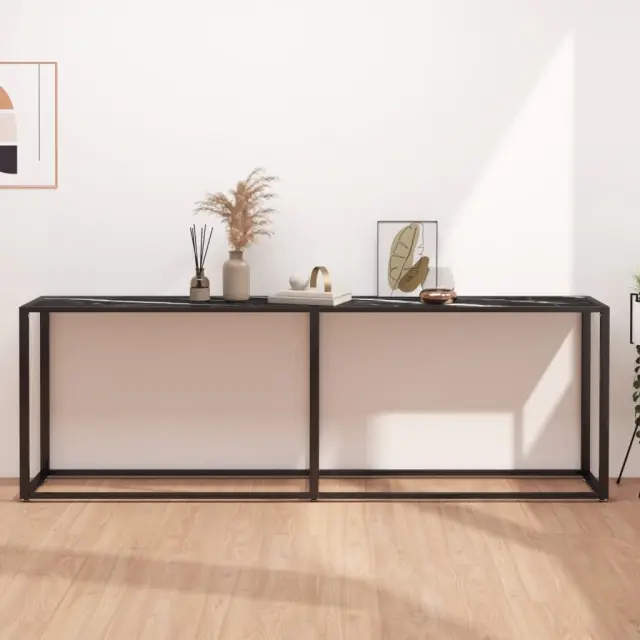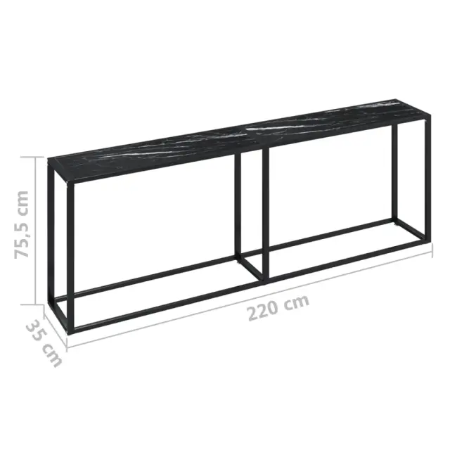 vidaXL Konzolna mizica črn marmor 220x35x75,5 cm kaljeno steklo