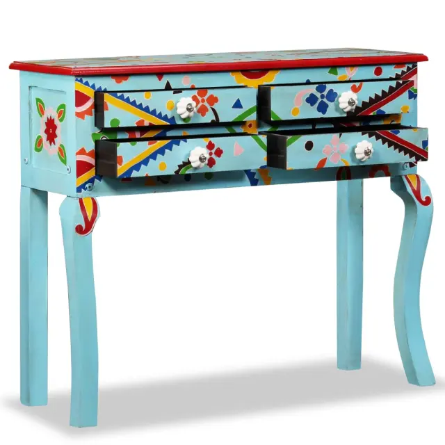 vidaXL Konzolna mizica iz masivnega mangovega lesa modra ročno barvana