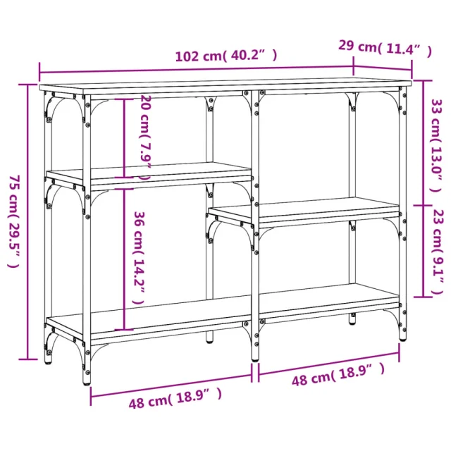 vidaXL Konzolna mizica rjav hrast 102x29x75 cm inženirski les