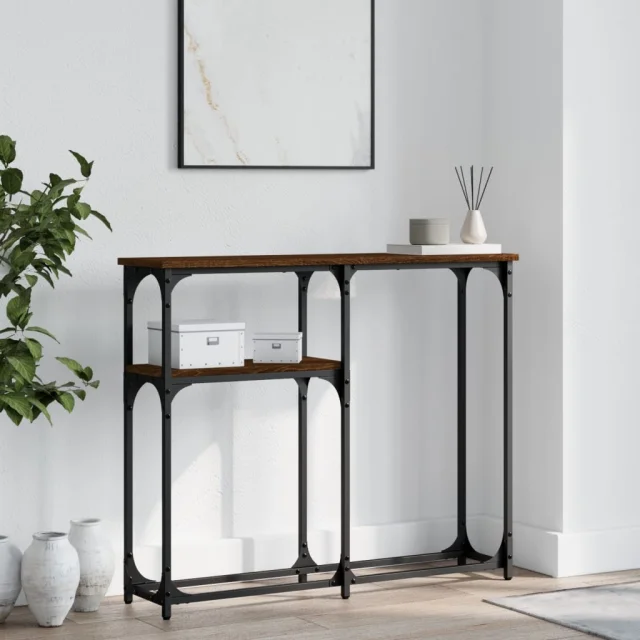vidaXL Konzolna mizica rjav hrast 90x22,5x75 cm inženirski les