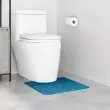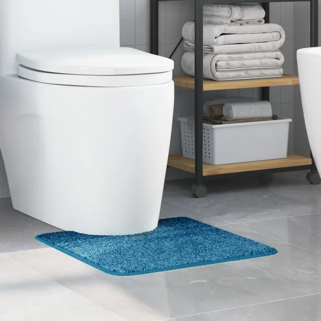 Ta moderna pravokotna kopalniška preproga v modri barvi prinaša udobje in praktičnost. Narejena iz močnega poliestra, vam daje mehko zaščito na hladnih ploščicah in dobro vpija vlago, kar poskrbi za varnost in prijetno vzdušje v vaši kopalnici.