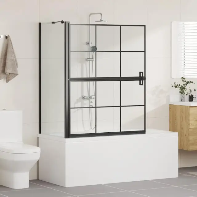 vidaXL Kopalna tuš zavesa Črna in prozorna 116 x 68 x 128 cm