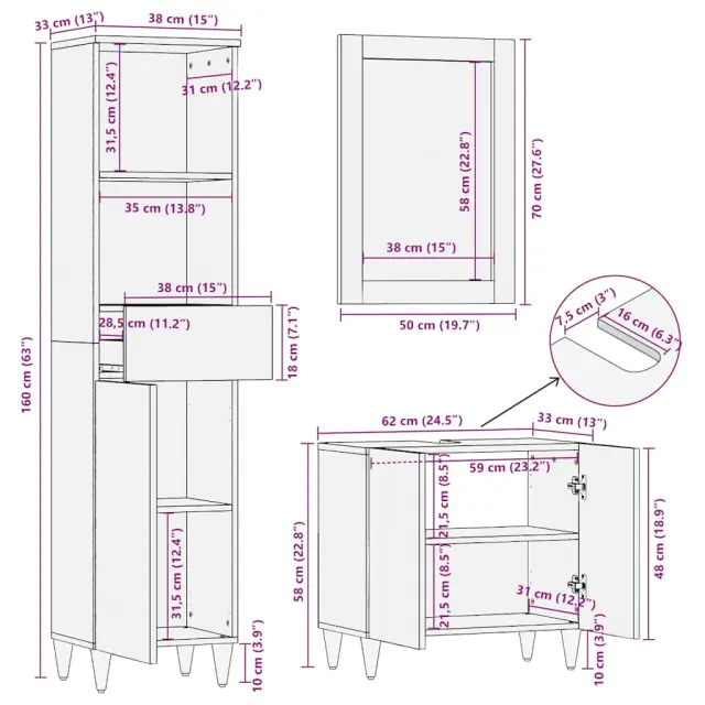 vidaXL Kopalniška garnitura 3-delna trden mangov les