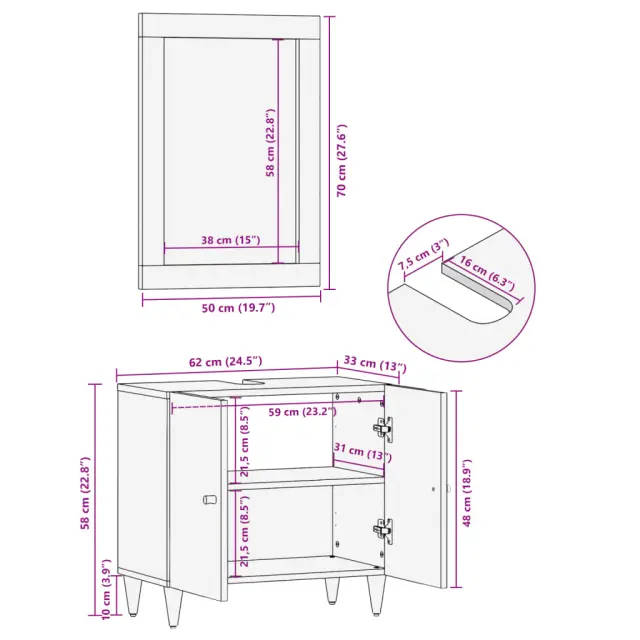 • Prostorsko varčna zasnova: Kozmetično ogledalo lahko enostavno namestite na steno, da prihranite prostor na tleh. Zgornji del kopalniške omarice je idealen za postavitev umivalnika, tako da lahko v celoti izkoristite prazen prostor pod umivalnikom.