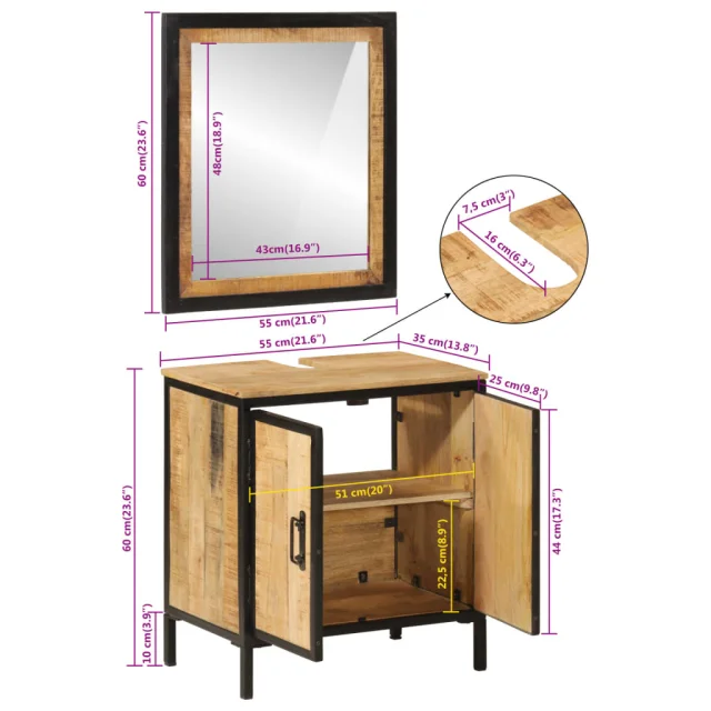 • Dimenzije omarice za umivalnik: 55 x 35 x 60 cm (D x Š x V)