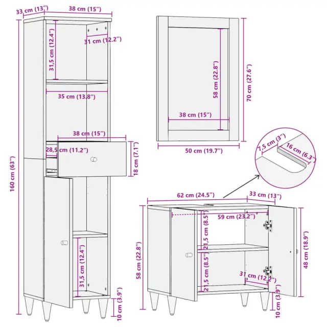 • Veliko prostora za shranjevanje: Leseno kopalniško pohištvo zagotavlja različne možnosti shranjevanja in dovolj prostora za shranjevanje predmetov v kopalnici.