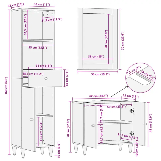 Ta priročen komplet kopalniškega pohištva s prostornim prostorom za shranjevanje je odličen dodatek k vaši kopalnici, ki ji daje urejen in osupljiv videz!