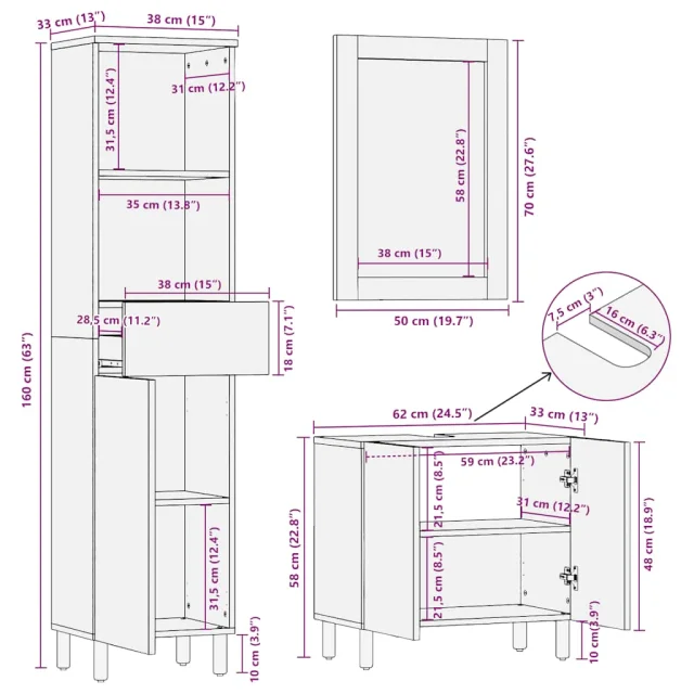 • Dimenzije omarice za umivalnik: 62 x 33 x 58 cm (D x Š x V)
