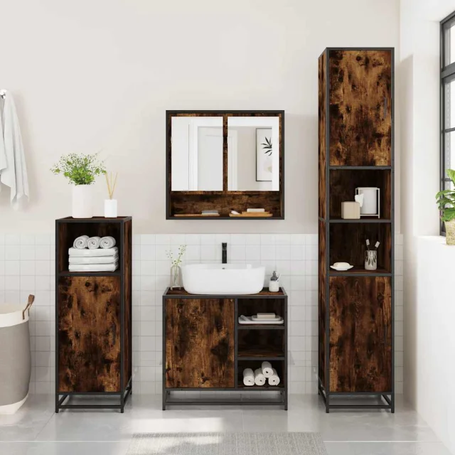 vidaXL Kopalniška garnitura 4-delna dimljeni hrast inženirski les