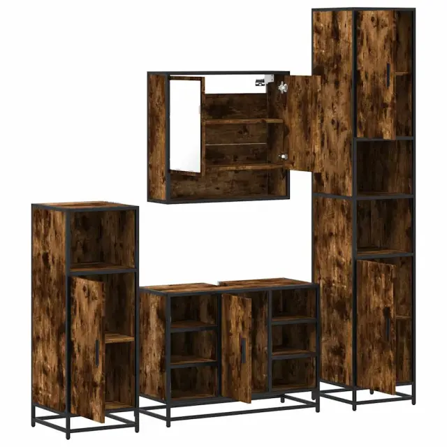 vidaXL Kopalniška garnitura 4-delna dimljeni hrast inženirski les