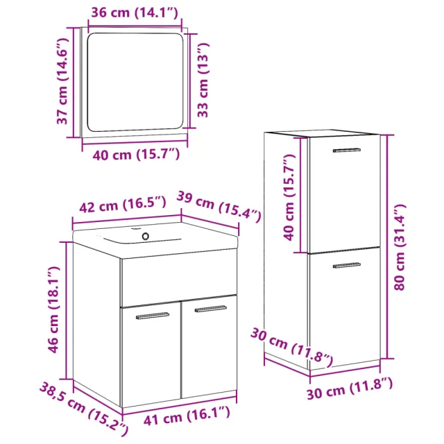 vidaXL Kopalniška garnitura 4-delna sonoma hrast inženirski les