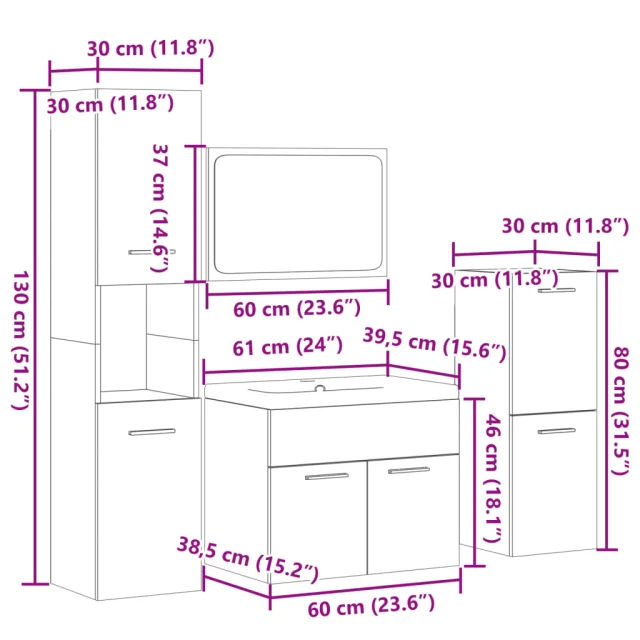 • Dimenzije omarice za umivalnik: 60 x 38,5 x 46 cm (Š x G x V)