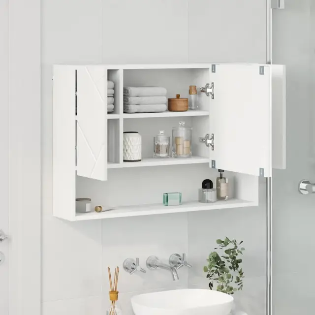 vidaXL Kopalniška ogledalna omara Bela 80 x 17 x 55 cm Konstruiran les