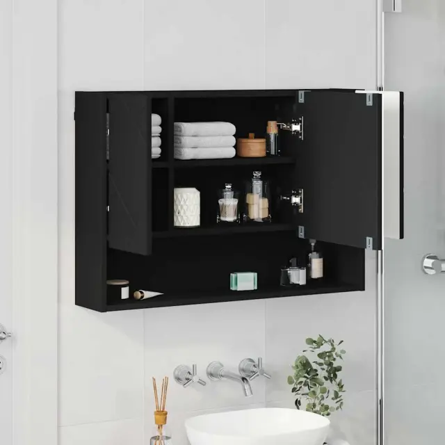 vidaXL Kopalniška ogledalna omara Črna 80 x 17 x 55 cm Konstruiran les