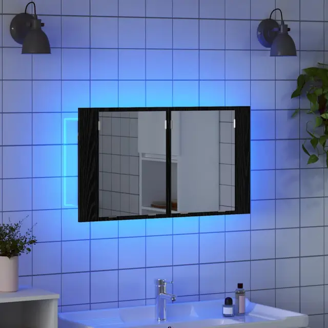 vidaXL Kopalniška ogledalna omara Črna Orehovina 80 x 12 x 45 cm