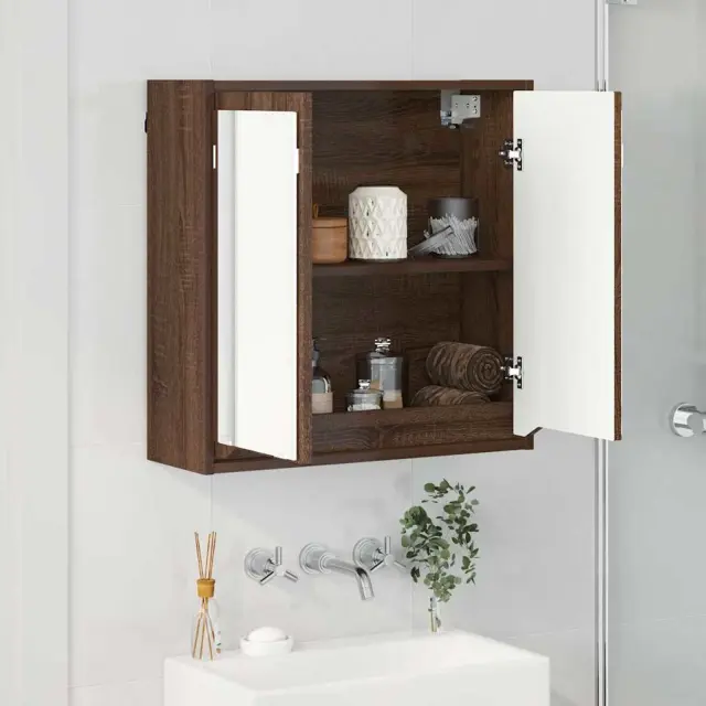vidaXL Kopalniška ogledalna omara s polico Rjav hrast 60 x 20 x 60 cm