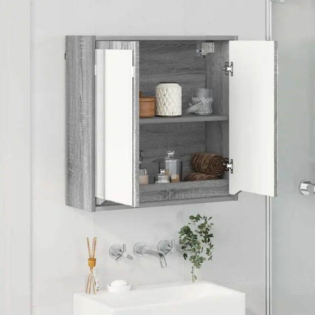 vidaXL Kopalniška ogledalna omara s polico Siva Sonoma 60 x 20 x 60 cm