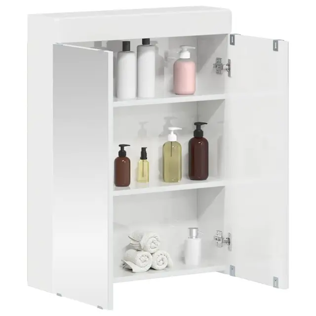 vidaXL Kopalniška ogledalna omara s polico TULUM Visok sijaj bela