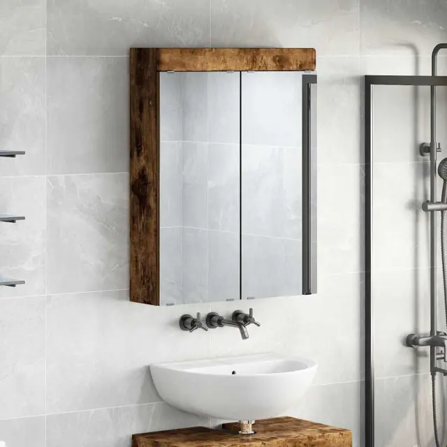 vidaXL Kopalniška ogledalna omara TULUM Dimljeni oreh Konstruiran les